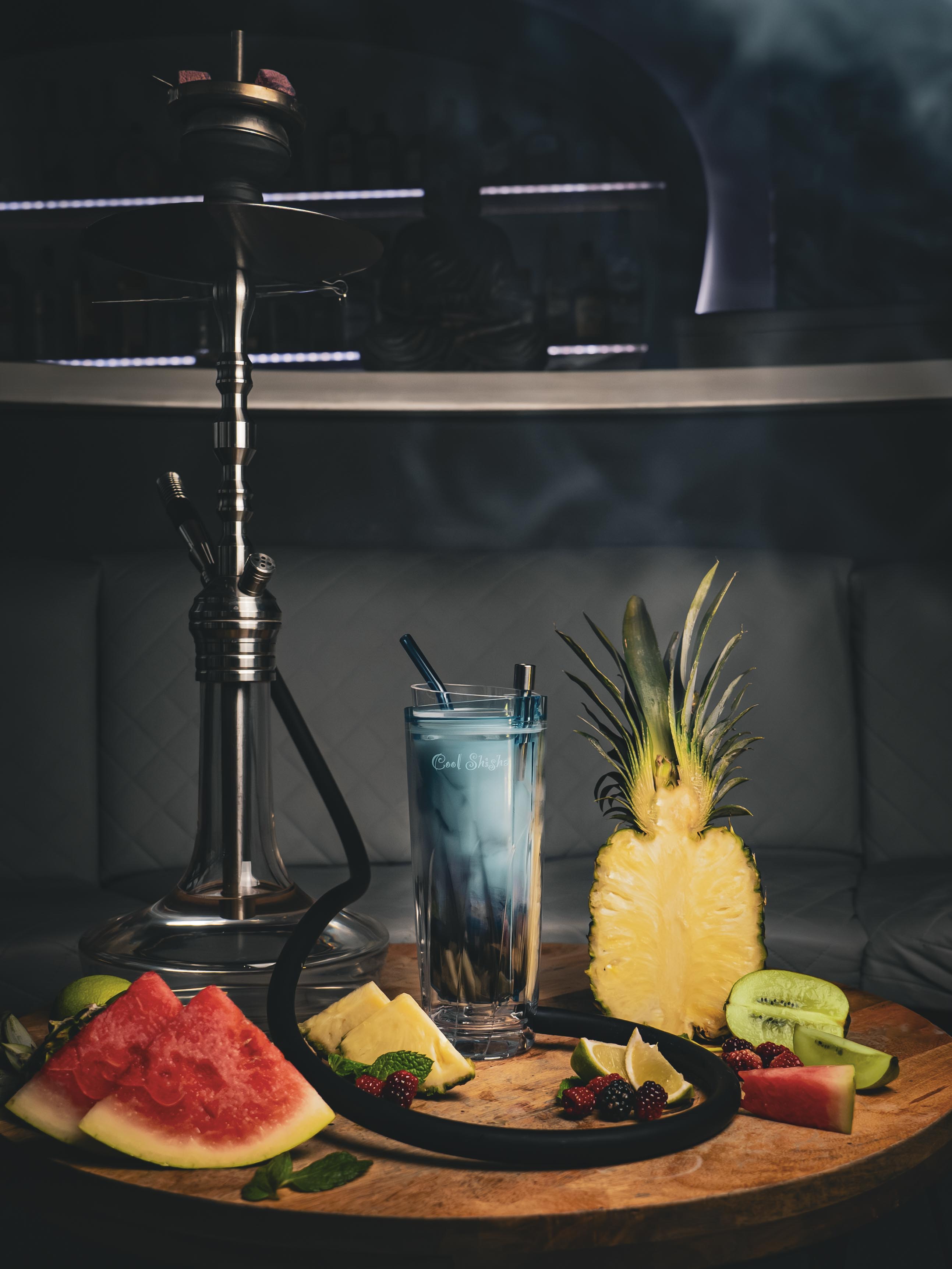 Die Rauchleitung der Wasserpfeife führt durch das Trinkgefäß an dessen Deckel sich das Mundstück der Shisha befindet. Wenn nun ein kühles Getränk konsumiert wird, dann kühlt auch der Rauch der Wasserpfeife ab.